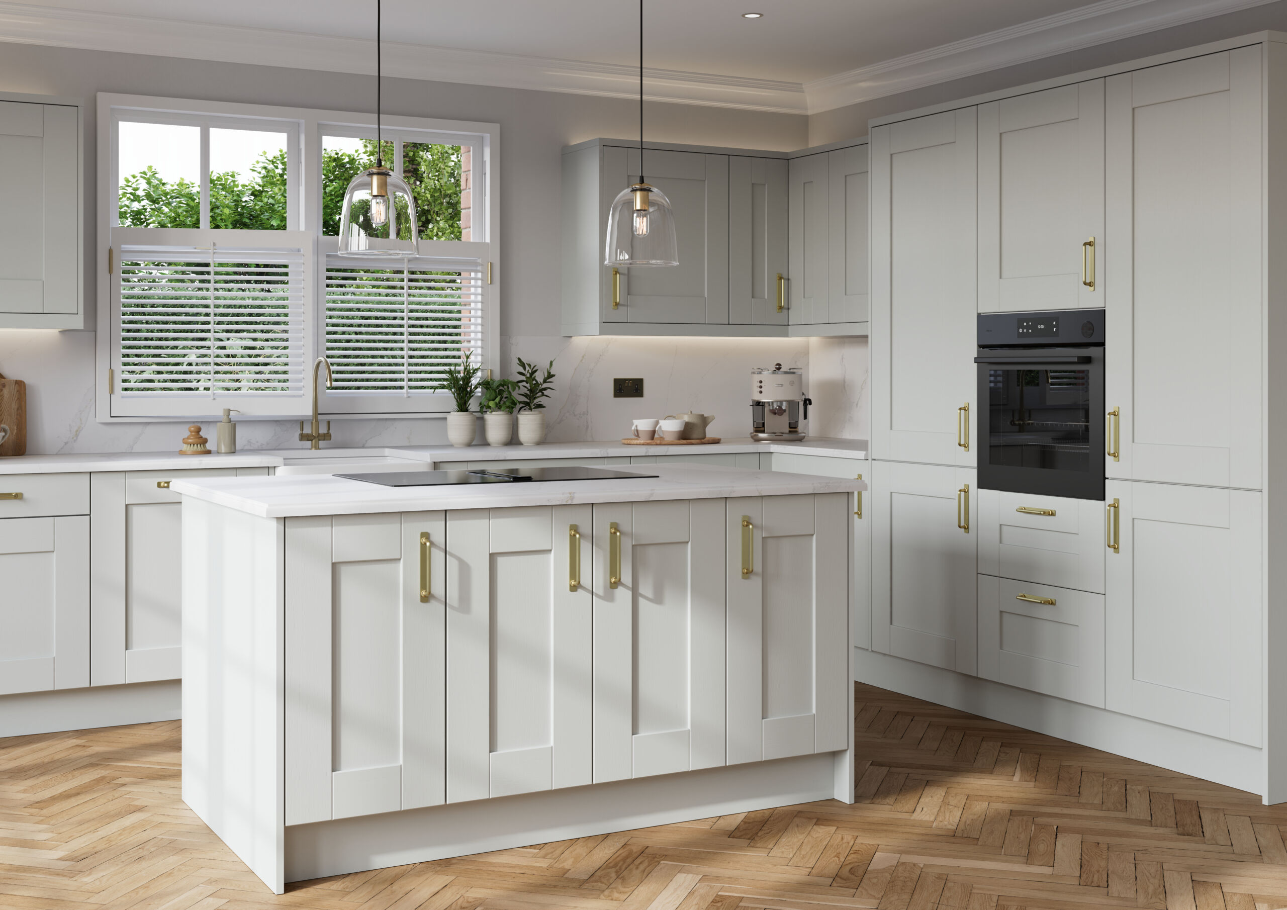 Dinmore takes a more classic approach, with its five-piece shaker design and subtle grained finish adding texture and definition. Rich in detail yet easy to place, it creates kitchens that are established, welcoming and full of quiet character.