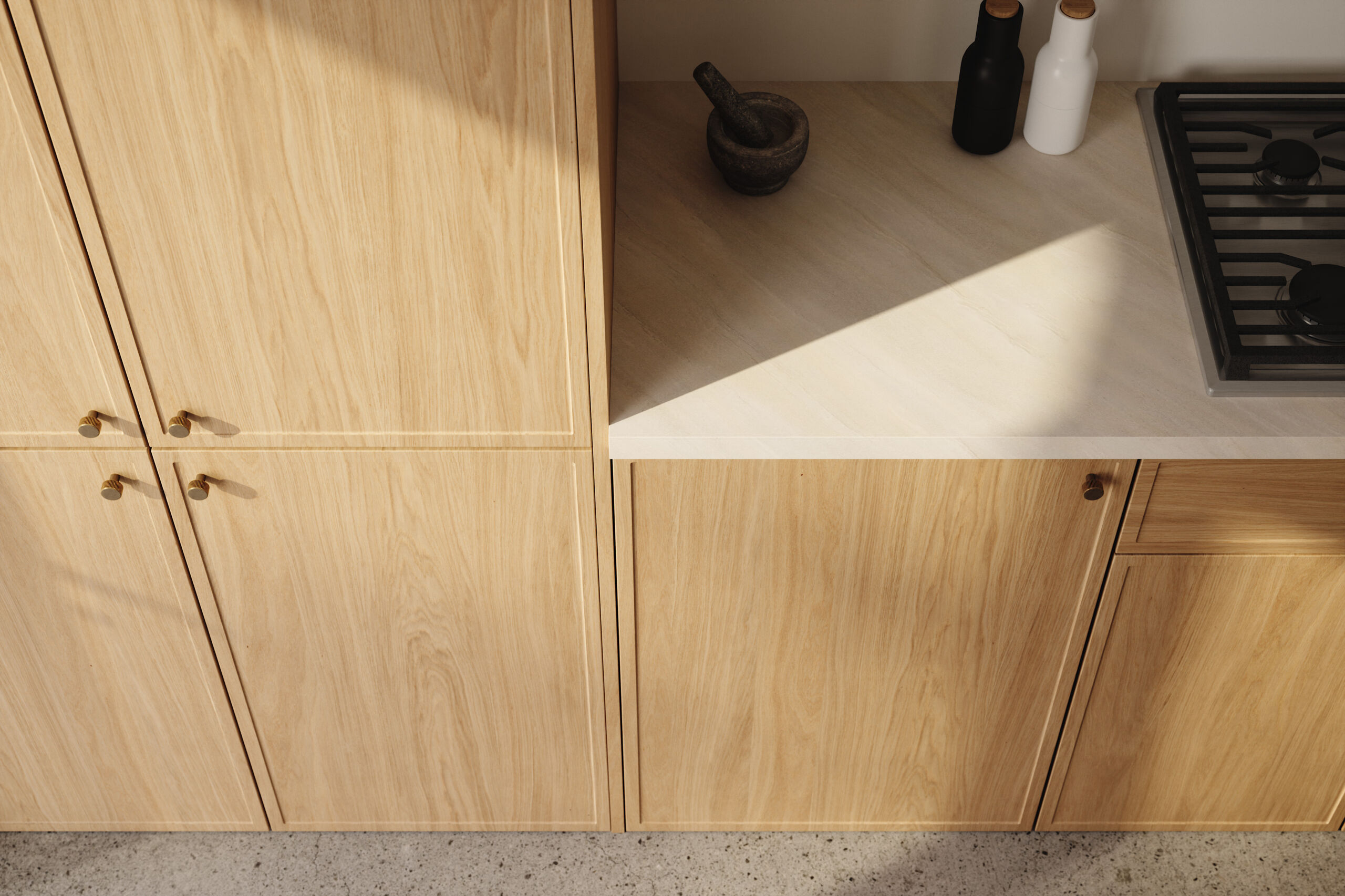 In this space, the slimmer frame introduces subtle definition without adding weight. The result is a kitchen that feels fresh, considered and easy to adapt to modern living.